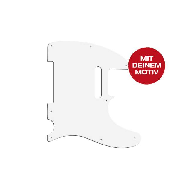 Custom Design Pickguard Telecaster - individuell mit deinem Motiv bedruckt - Edles Pickguard aus hochwertigem Acryl. Stärke 2 mm, mit 5-farbigem rückseitigem Fotodruck C,M,Y,K , weiß. Somit ist der Druck frontseitig geschützt. Beschädigungen oder Kratzer durch Plektren etc. sind ausgeschlossen. (Schraubloch-Bohrungen sind von Hersteller zu Hersteller leicht unterschiedlich und können abweichen)