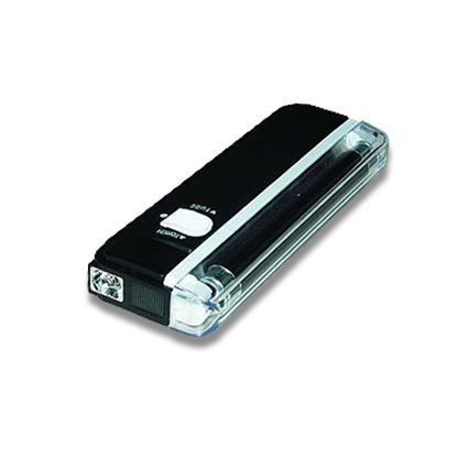 UV-Lampe mit zusätzlicher Taschenlampe. Kleiner handlicher UV-Prüfer. Durch Batteriebetrieb bestens für den mobilen Einsatz ideal geeignet.